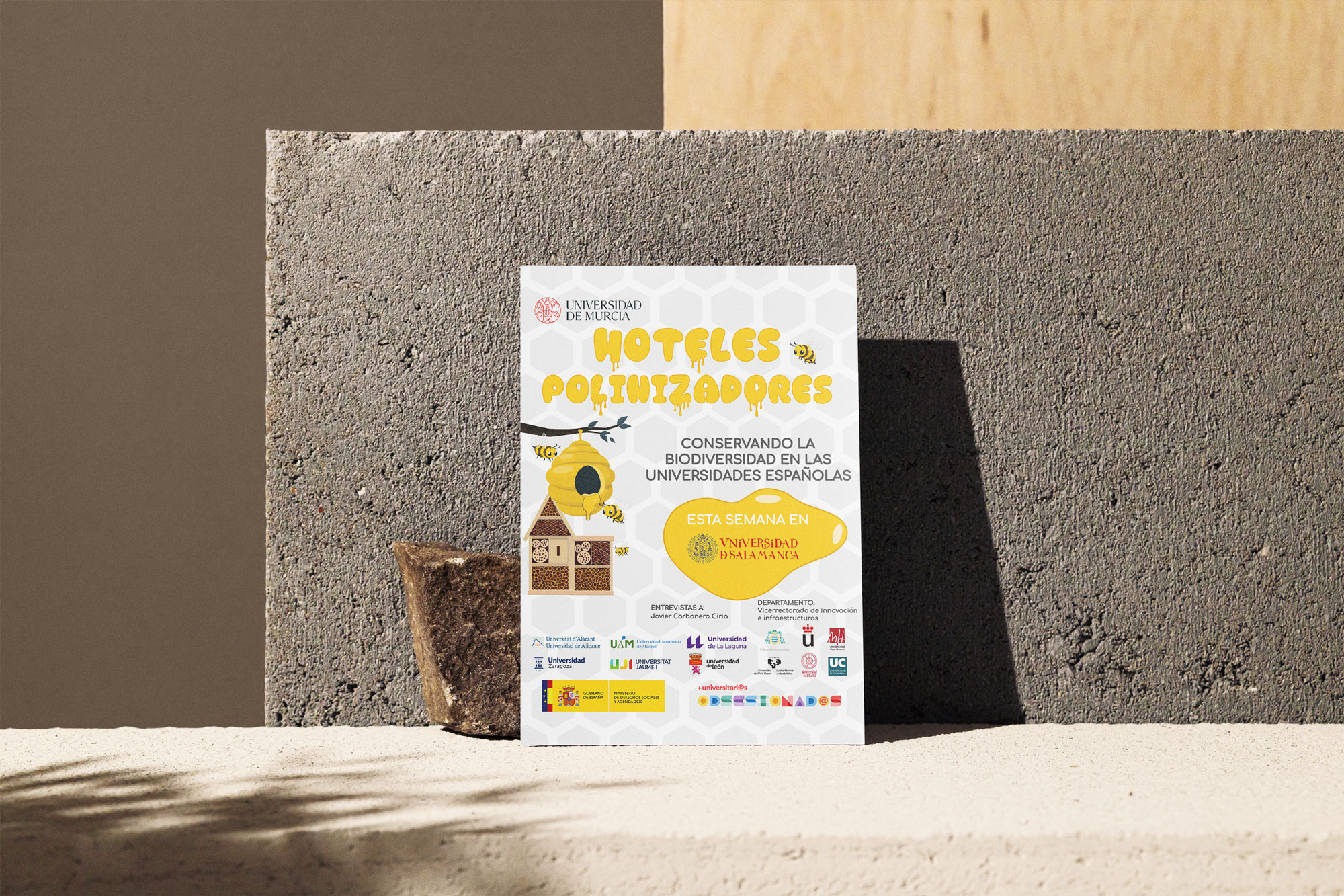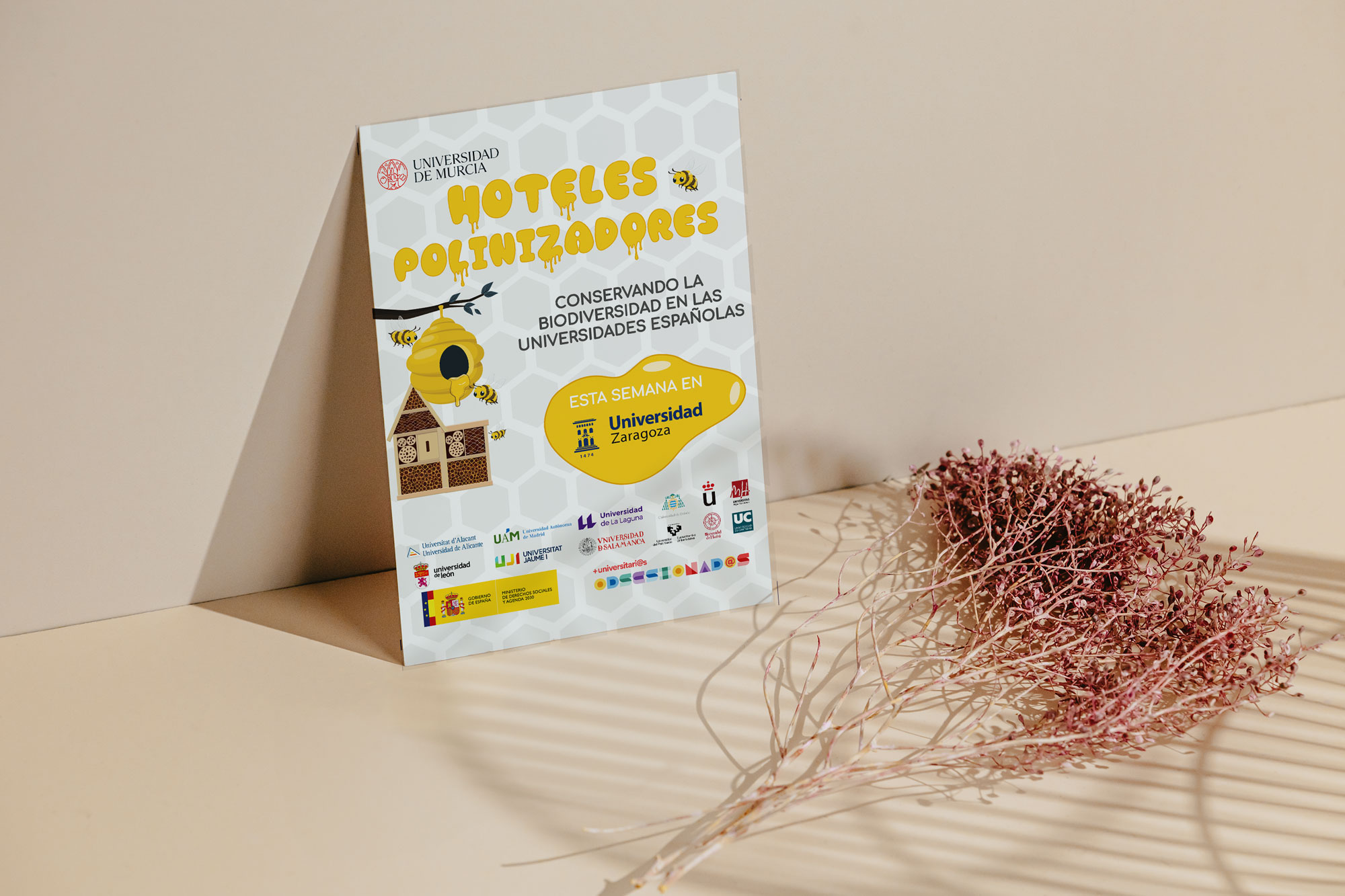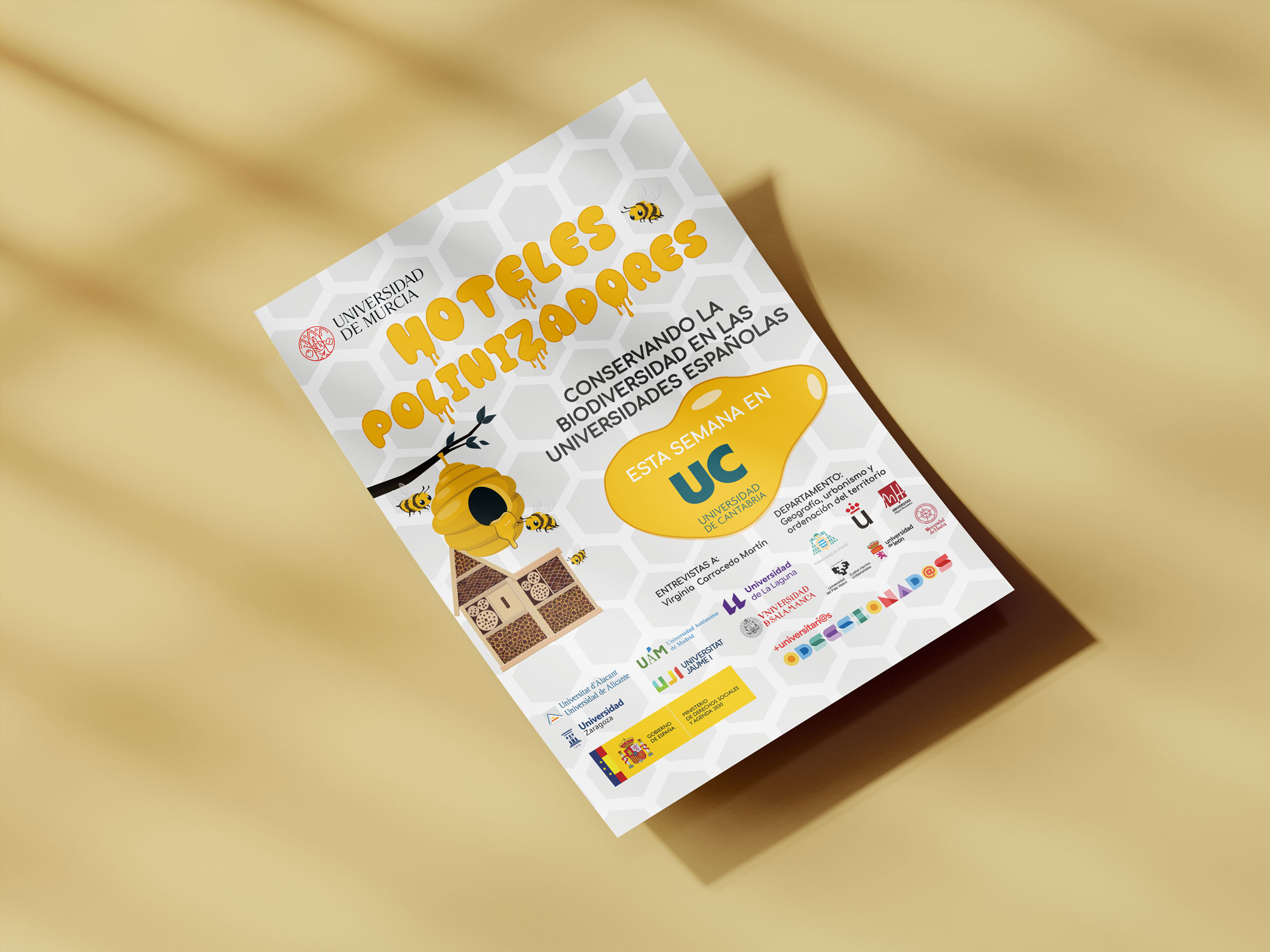 Diseño de Cartel sobre Hoteles PolinizadoresCliente: Universidad de Murcia – Sector: Medio ambienteDiseño de carteles para la inserción de hoteles polinizadores en diversas universidades de España,con el objetivo de promover la polinización.